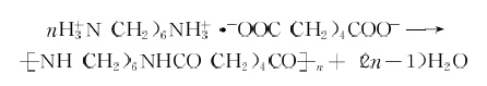 由二元酸和二元胺制取尼龍時,需要嚴格控制原料配比為等摩爾比,才能得到分子量較高的聚合物,因此,在生產(chǎn)中必須先把己二酸和己二胺混合制成尼龍66 鹽。尼龍66 鹽的制備是分別把己二胺的乙醇溶液與己二酸的乙醇溶液在6 0 °C 以上的溫度下攪拌混合,中和成鹽后析出,經(jīng)過濾、醇洗、干燥,最后配制成63%左右的水溶液,供縮聚使用。反應式如下: